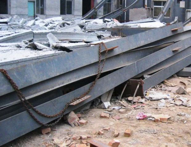 從遼寧沈陽一起鋼架倒塌事故說起,某正在施工的鋼結構四層樓在安裝預制混凝土樓板時突然發生整體倒塌,造成人員傷亡。事故發生時,已安裝完部分柱子、主梁、系桿和部分混凝土樓板。倒塌后全部構件趴倒在地,疊在一起見圖1和圖2。